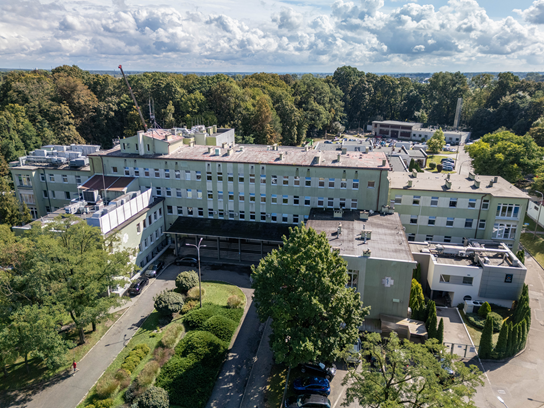 Chcesz zobaczyć więcej? Teraz dajemy Ci możliwość obejrzenia budynku głównego szpitala z lotu ptaka! Wystarczy kliknąć na link po lewej stronie.