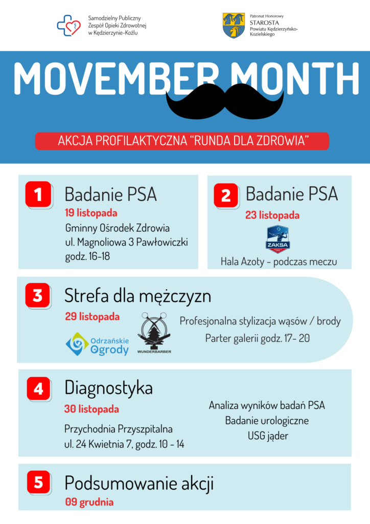 Pierwszy etap akcji profilaktycznej w ramach Movember Month rozpoczynamy w: